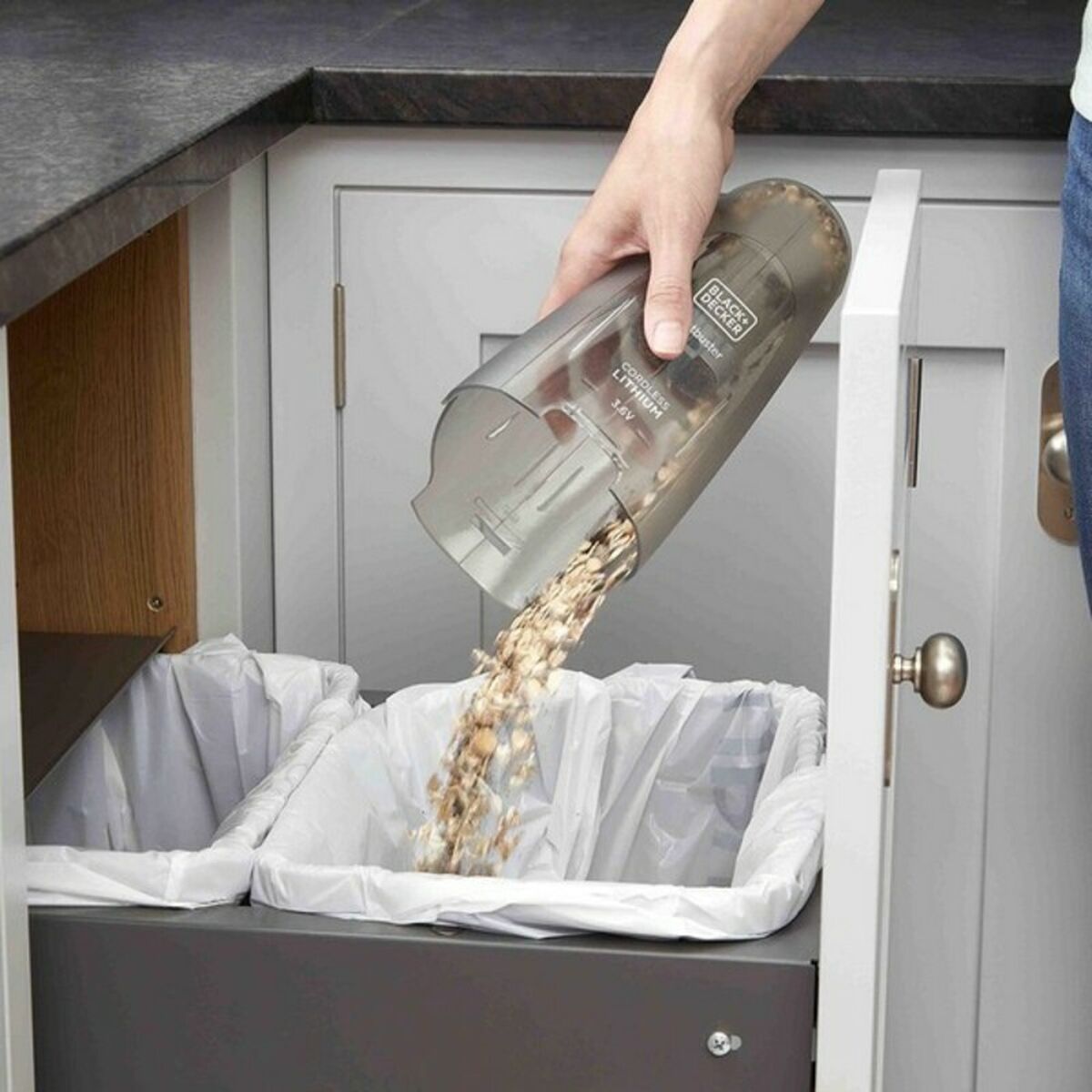 L'aspirapolvere portatile ciclonico Black & Decker NVC115JL-QW combina efficacia e comodità in un design ergonomico, ideale per mantenere la tua casa libera da polvere e sporcizia. Questo potente aspirapolvere senza fili funziona con una batteria al litio da 3,6 V e 5,4 Wh, fornendo un'aspirazione efficace che raggiunge i 211 mm. Con un flusso d'aria di 630 litri al minuto e una potenza di 8 AW, questo dispositivo si distingue per la sua eccezionale maneggevolezza e la sua azione ciclonica, che migliora il risultato della pulizia. Il suo serbatoio traslucido ha una capacità di 325 ml, consentendo una facile visualizzazione dell'accumulo di rifiuti e facilitando lo svuotamento e il lavaggio. Questo modello offre circa 12 minuti di autonomia, sufficienti per svolgere compiti rapidi, e si ricarica in sole 10 ore tramite un caricatore tipo Jack, massimizzando la sua funzionalità nella vita quotidiana.