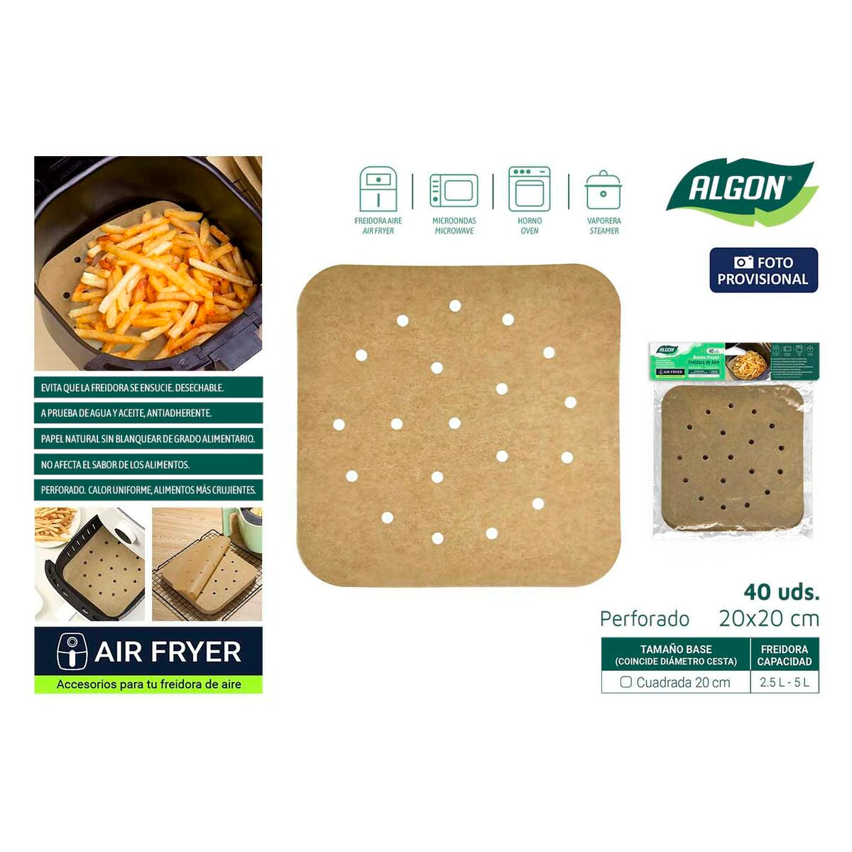 Carta per friggitrice ad aria Inde 20 cm (24 Unità)